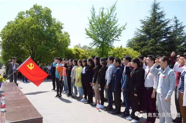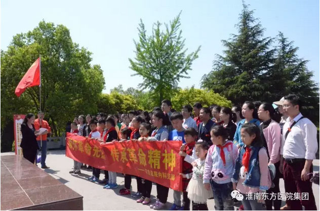 2017年4月23日上午八點半,金年会体育總院内科黨支部全體黨員同志在黨支部任梅書記的帶領下前往上窯新四軍烈士林園,開展“緬懷革命先烈,傳承革命精神”的黨員活動日活動。部分職工還特别帶上了已成為少先隊員的孩子們,進行愛國主義教育活動。