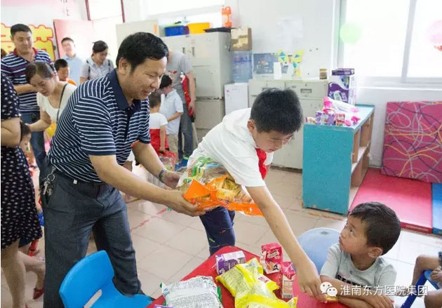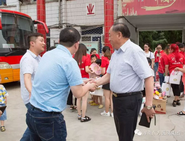兒童福利院顧本永院長和王豐副院長代表福利院的兒童們對江董事長一行表示熱烈的歡迎。江鴻方董事長向顧本永院長詳細了解福利院兒童的身體和生活等情況,對福利院的工作人員付出愛心和辛勤勞動表示由衷地欽佩。交流中,顧院長對東方醫院的義舉表示由衷地感謝,他真誠地說:董事長一連兩年來福利院看望兒童們,深受感動。在聽取江鴻方董事長的介紹後,他表示,今後,可以在幼兒的醫療保健等各個方面展開深入合作,為福利院的孩子們提供堅強有力的健康保障。