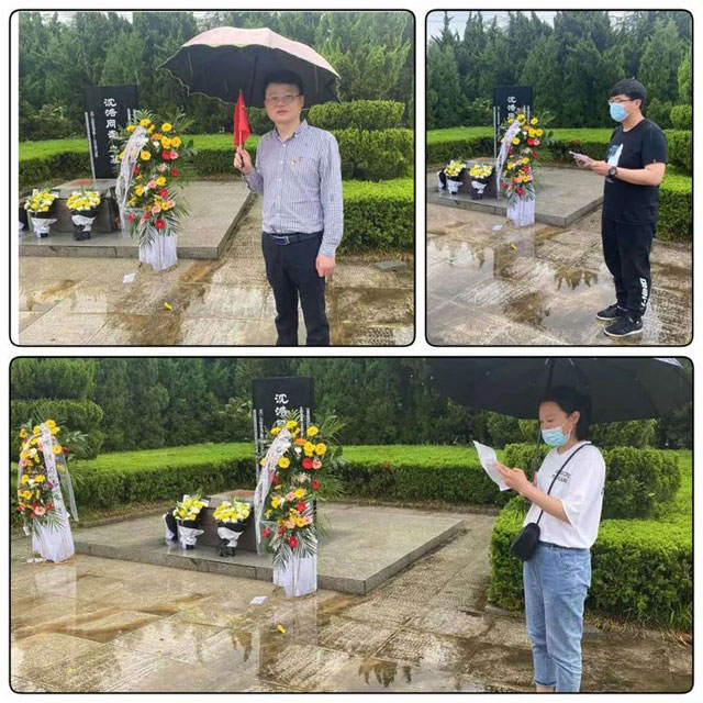 支部書記汪藝主持祭掃活動,黨員代表李斌和高鳳勤同志向沈浩書記敬獻鮮花,表達懷緬和追思,集體鞠躬緻敬,共同懷念這位為廣大共産黨人樹立精神豐碑的第一書記。