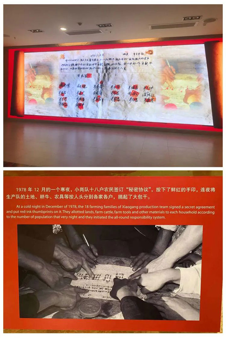 祭掃結束後,大家前往大包幹紀念館進行參觀學習。通過參觀“溯源、抉擇、貢獻、巨變、展望、關愛”6個展區,聆聽“十八個紅手印”的故事,重溫小崗村大包幹從醞釀到發生、發展的曆史過程,見證小崗村人民生活發生的巨大變化。