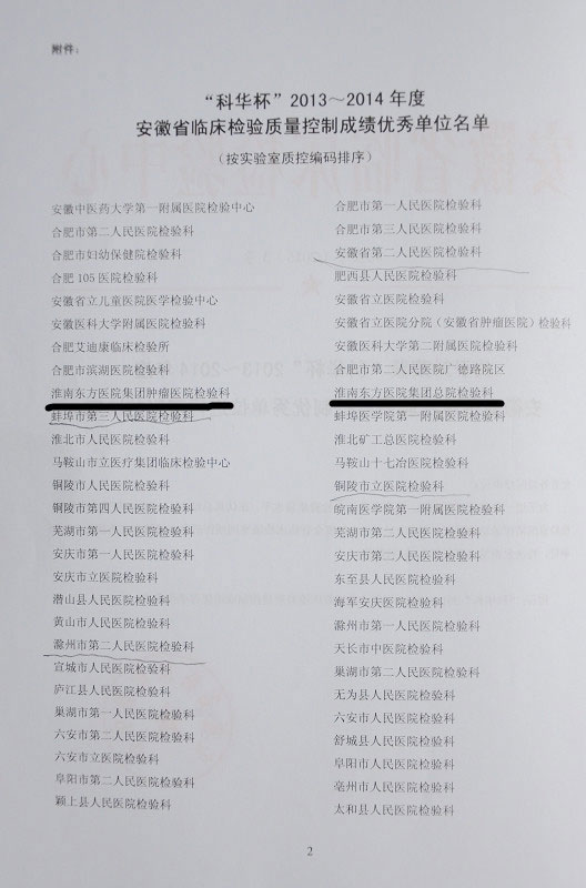 “安徽省臨床檢驗質量控制成績優秀獎”是由安徽省衛生廳的直屬事業單位——安徽省臨床檢驗中心負責評審,兩年一度。該獎項設置以來,東方總院已于近八年來連續四次獲獎,東方腫瘤醫院連續兩次獲獎。