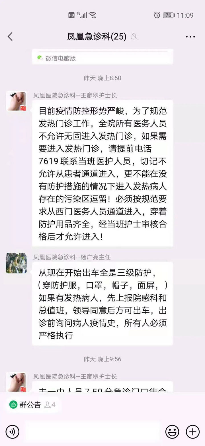 面對疫情的反複,鳳凰醫院急診科采取了測體溫、設隔離室、加強院感培訓等措施,避免造成患者和醫務人員感染,但仍存在着患者不明流行病學史的可能,急診科醫務人員承擔着巨大的風險和壓力。急診科主任楊廣亮和護士長王彥翠每日提前到崗,現場查看病人情況,組織急診科全體醫護人員加緊學習新冠肺炎防控知識,及時在微信群學習最新版《新型冠狀病毒肺炎診療方案》,對疫情防控知識、病人表現識别、病情處置等各方面進行了學習培訓,要求全科人員提高政治站位,強化責任擔當,做好醫療診治工作,守好戰“疫”前哨站 ,并叮囑科裡人員做好各項個人防護措施。積極做好科室環境消毒工作,保障每一位患者的醫療安全,醫護協同,兢兢業業!