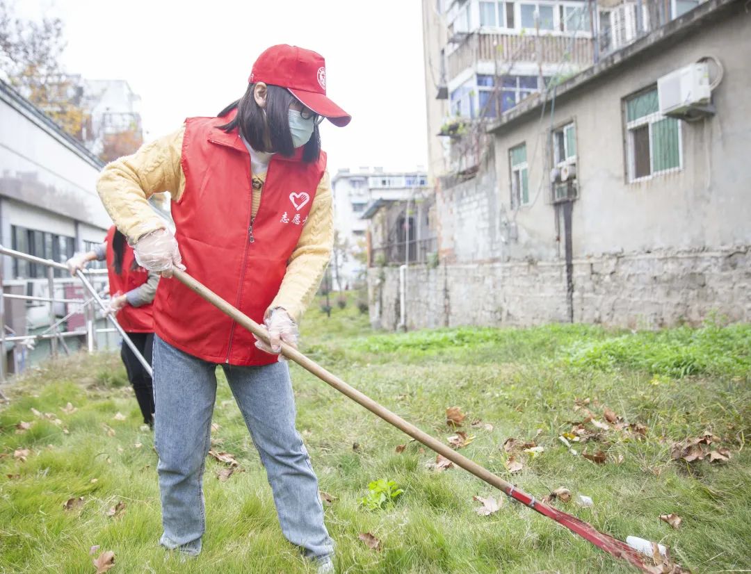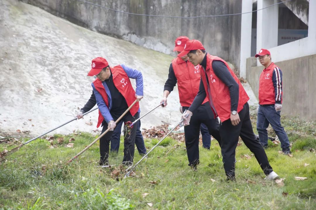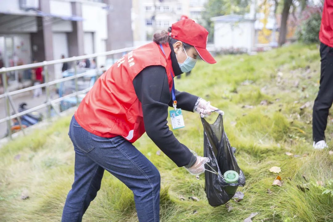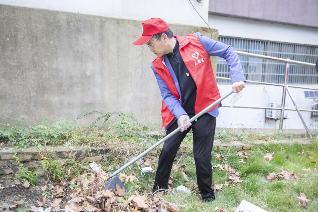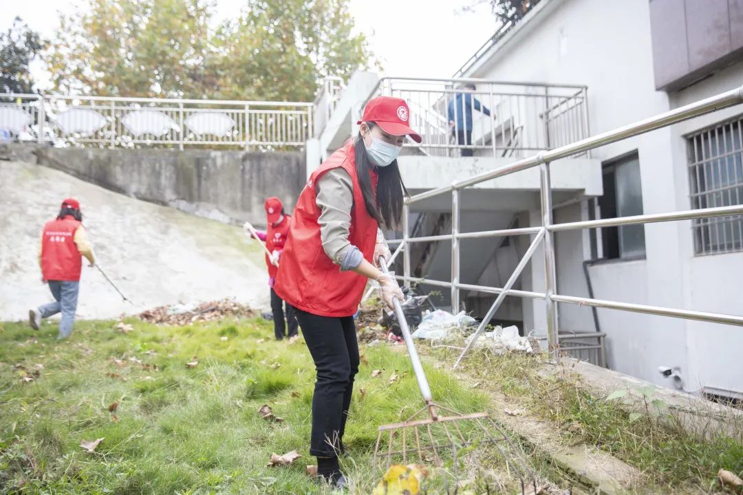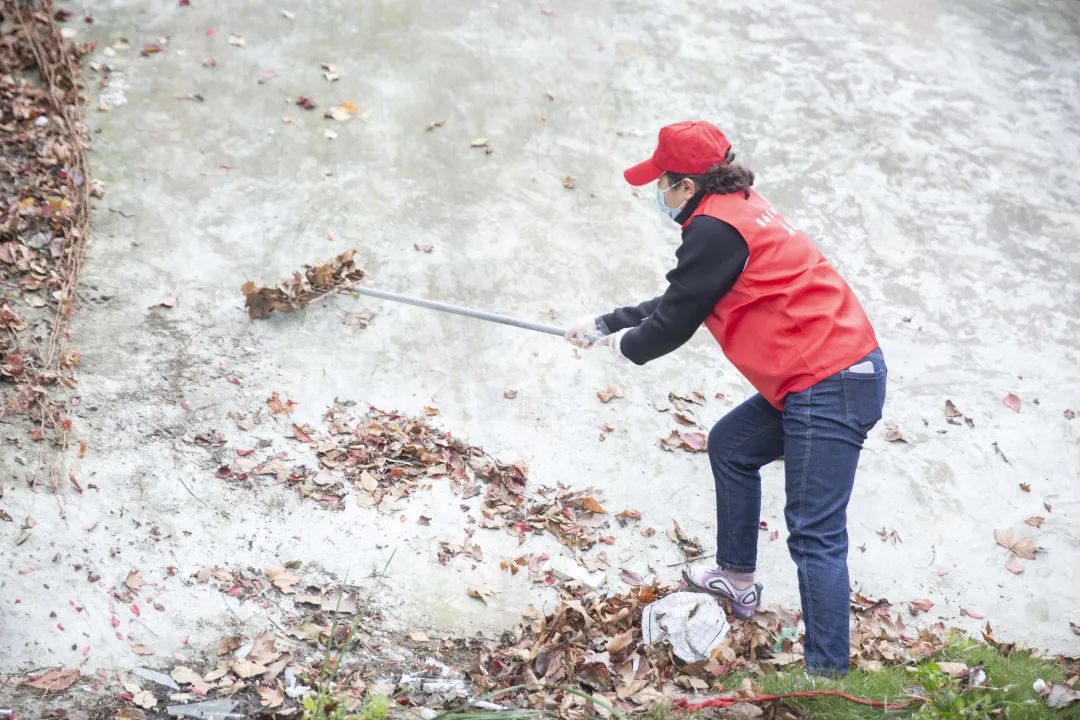 特别是一處水泥坡面上爬有幹枯的爬牆虎,影響美觀。劉豔華書記率先垂範,站在坡上用耙子将爬牆虎的枝條攏到一邊,再徒手将枝條扯斷。志願者們為了能盡可能的将草坪深處的垃圾清理幹淨,不顧腳陷在淤泥裡,草上的雨水将褲子沁濕,積極發揮奉獻精神,不怕髒不怕累,積極參與,認真清理垃圾、雜草、淤泥等。雖然天氣微涼,但大家幹得如火如荼,大汗淋漓。