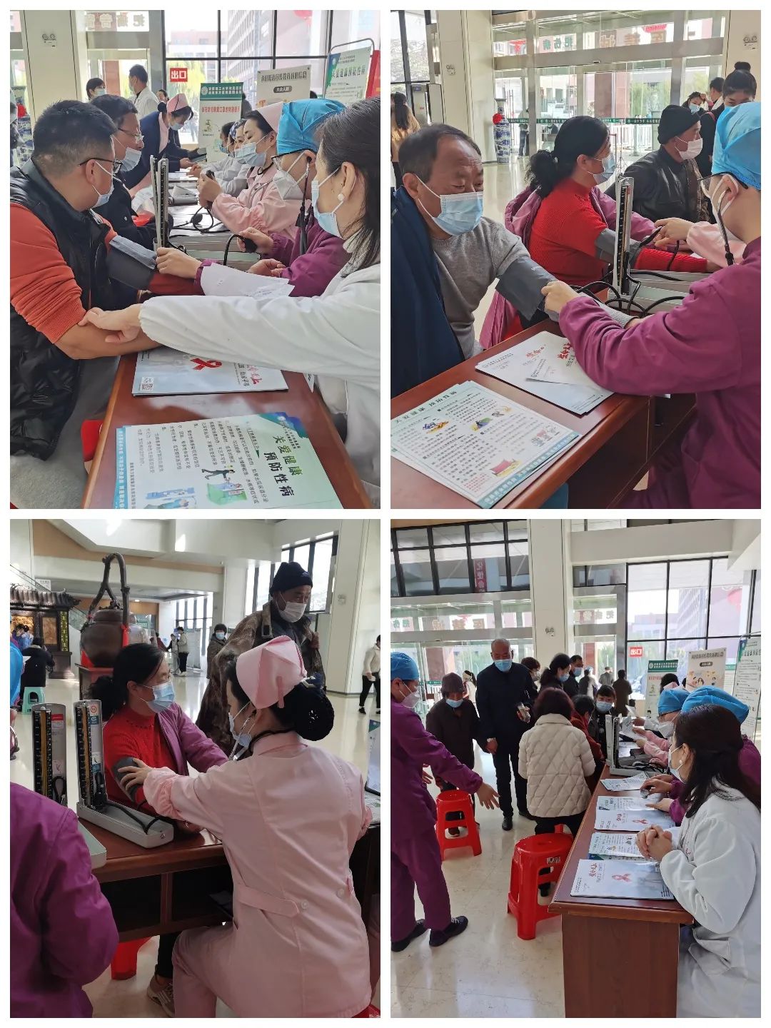 活動現場,門診的大屏幕正播放着關于艾滋病的宣教視頻,以及宣傳海報、橫幅,工作人員向群衆發放艾滋病宣傳折頁,詳細講解艾滋病的症狀、傳播途徑及國家防治艾滋病政策等内容,并着重宣傳了關于艾滋病的預防措施,同時還為大家提供了免費測血壓及健康咨詢等服務,受到群衆的熱烈歡迎。