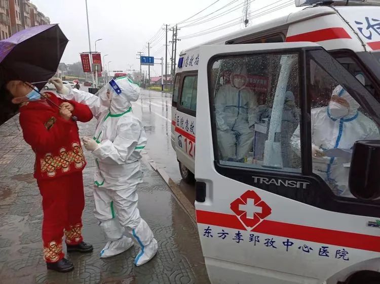 2022年3月20日,大雨如注,氣溫驟降,給外出采集工作帶來了阻礙,但是,采集員楊靜,駕駛員鄒孔利,120急救徐蕊,賀華早絲毫沒有被天氣影響,她們依然精神矍铄,厲兵秣馬,帶着抗疫的決心,走進了村莊,為各家各戶的村民進行核酸采集。