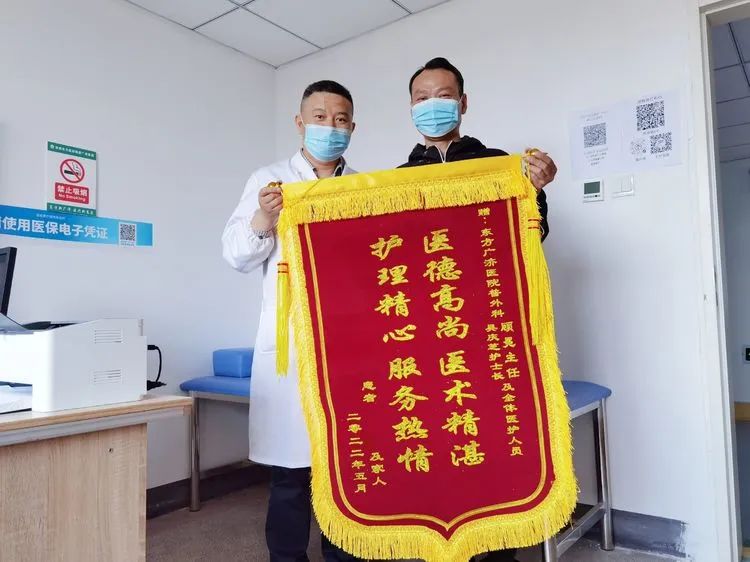 “顧主任,謝謝。”廣濟醫院門診部外科診室裡出現了一張熟悉的面龐,精神奕奕的張師傅(化名)捧着錦旗走進診室,和數月前初見顧冕主任時的狀态判若兩人。