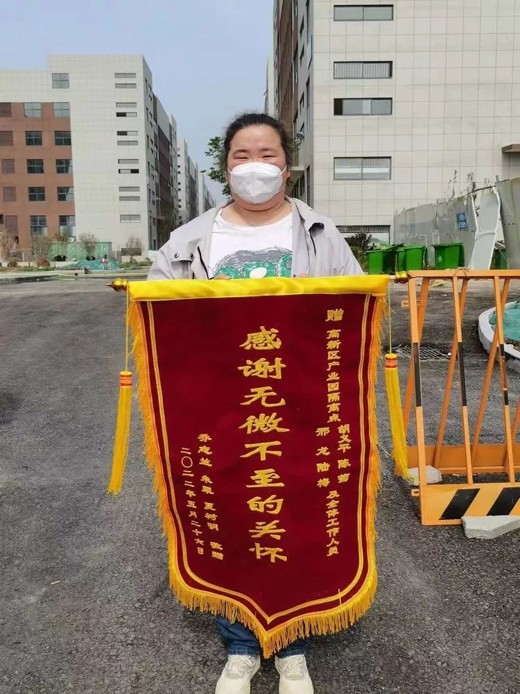 “感謝無微不至的關懷。”隔離結束後,夏奶奶和另外兩位鄰居專門訂了兩面錦旗送到隔離點。正巧遇到照顧自己的醫護人員,挽着陸梅的胳膊,夏奶奶一句一句的訴說着對她的感激:“我甚至不知道她的模樣,但是我記得她的聲音。‘奶奶,今天怎麼樣?體溫量了嗎?有沒有别的不舒服,降壓藥按時吃,藥還夠嗎?'我要謝謝她,對我們老人家的細心呵護,謝謝她的守護和照顧。”夏奶奶是陸梅第二次支援隔離點時遇見的。