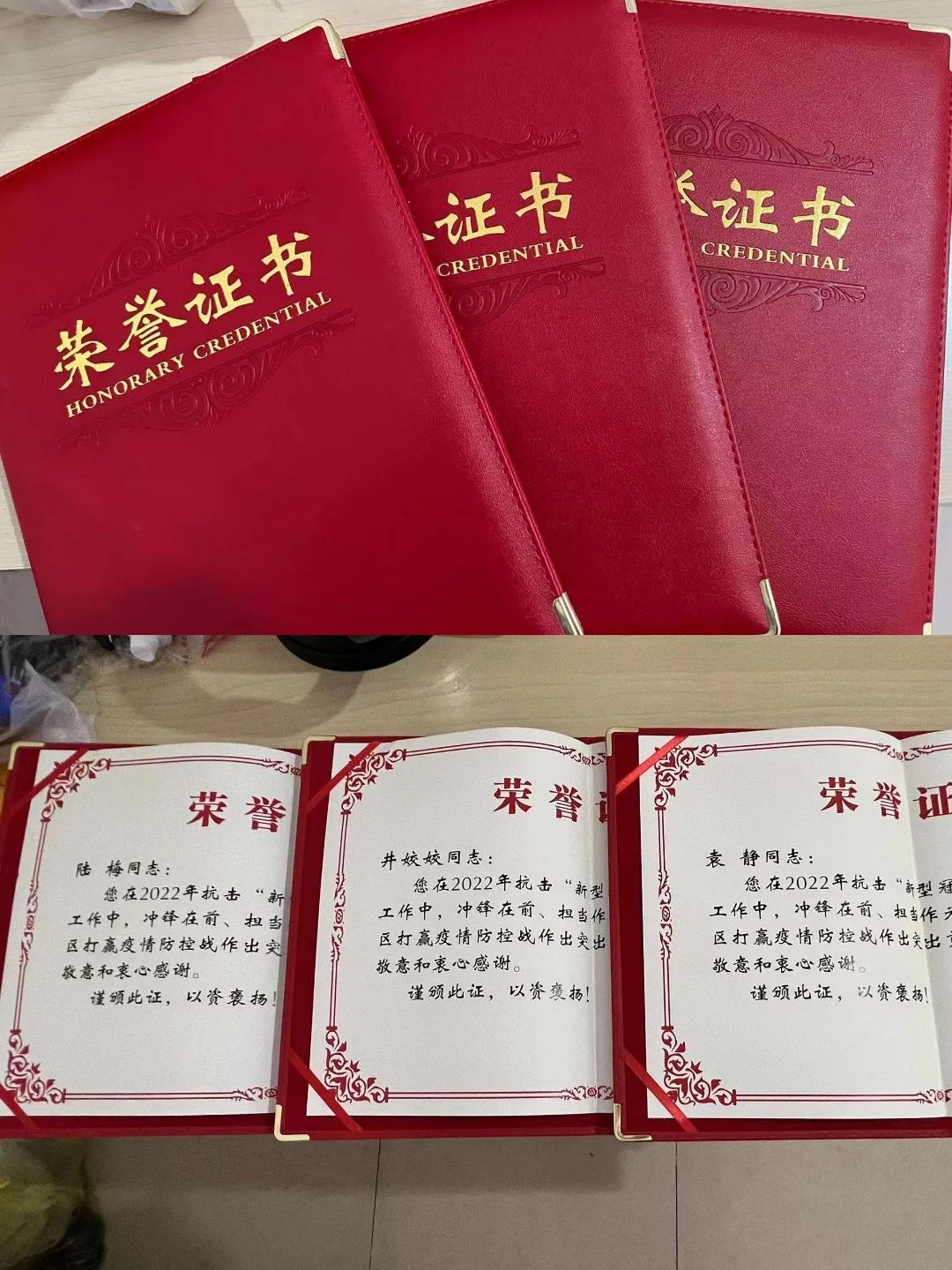 2022年6月13日(69天之後),陸梅和井姣姣、袁靜護士捧着來自淮南市和高新區疫情防控指揮部的榮譽證書凱旋而歸。脫下隔離服戴上燕尾帽,不在科室的日子,她們以另一種方式書寫抗疫的青春力量。