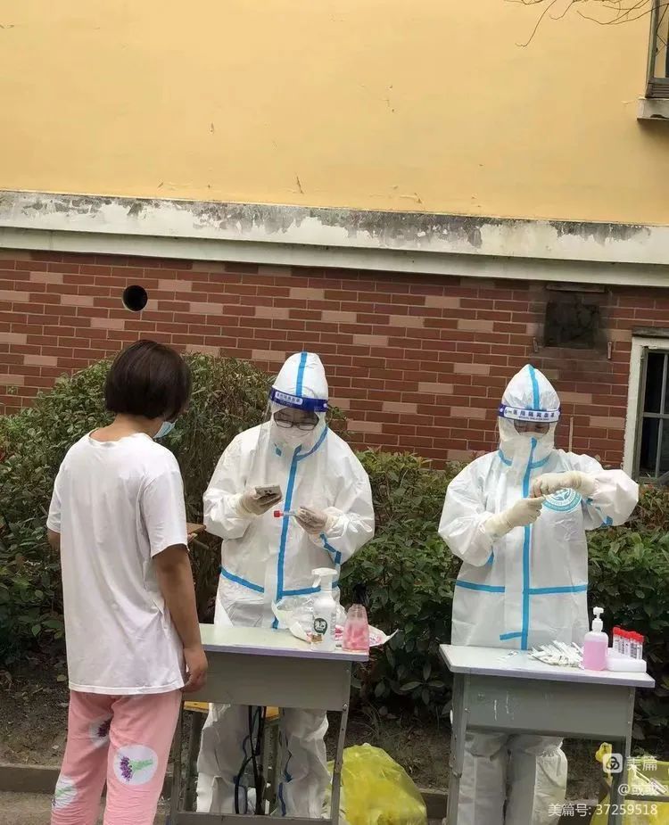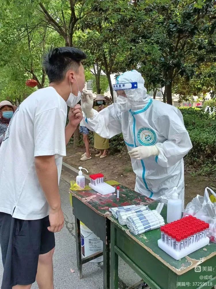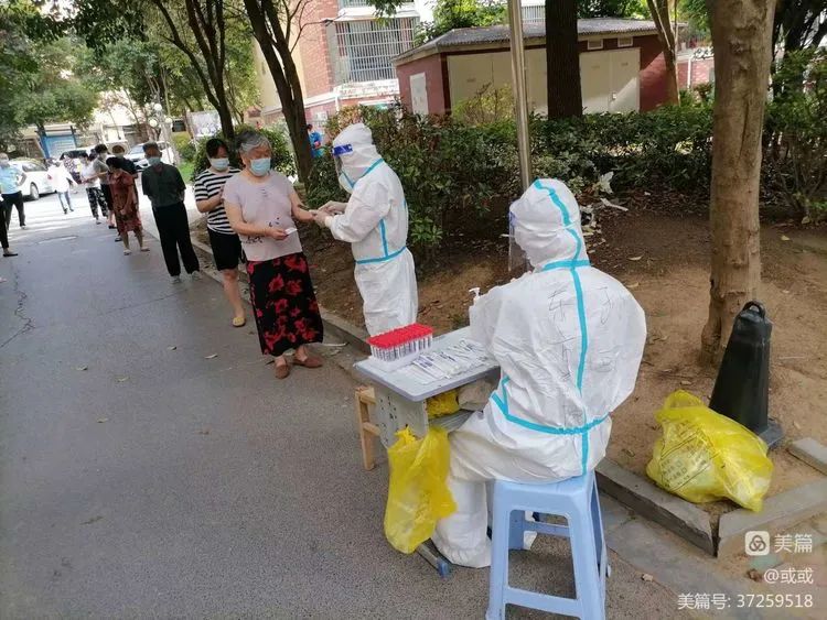 面對恐慌的村民,醫護人員們安慰道:“咱們要相信黨和政府,隻要大家同心協力,配合政府的工作,一定能夠戰勝疫情!”第一天采樣工作期間,因酷暑,防護服悶熱,穿戴時間久,我們多名醫護人員出現不适症狀,但是我們沒有一人叫苦叫累、退出隊伍,經過簡單的降溫處理後,又立馬投入緊張的采樣工作中。
