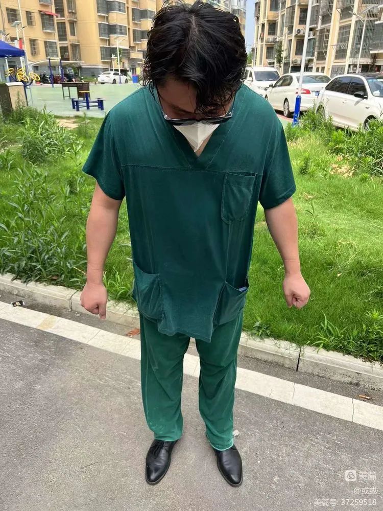 冒着酷暑,經過一上午高強度的工作,東方集團醫護人員脫下防護服時,額頭上的汗珠不停的滴在睫毛上,流進眼睛裡,汗水濕透了衣服和褲子,透着疲憊,說到:“作為一名醫護工作者,這是我的使命,泗縣需要我,我要把自己的工作做好!”
