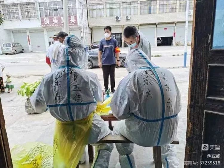 7月2日上午8時許,我們到達泗縣。雖是天氣炎熱,但我們必須要穿好防護服,戴防護口罩、防護面屏、一樣也不能少,一切穿戴就緒,開始第一天的采樣任務。7月2日上午,泗縣氣溫達到35攝氏度,為了搶時間、拼速度,前來支援的醫護人員不能喝水,不能上衛生間,頂着烈日敲開一戶一戶家門,為村民進行核酸檢測。