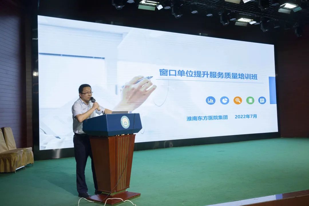 為提升優質服務質量和水平,積極構建群衆滿意、社會認可的優良服務環境,推動醫院高質量發展,7月6日-7日,金年会体育組織舉辦窗口單位提升服務質量培訓班,本次培訓邀請建行淮南市分行個人金融部副總經理王翔進行授課,醫院集團出入院管理科、藥房、檢驗科、保衛科及車輛進出管理單位、門診部、急診科、影像中心和超聲科等窗口科室全體工作人員460餘人參加了此次培訓。