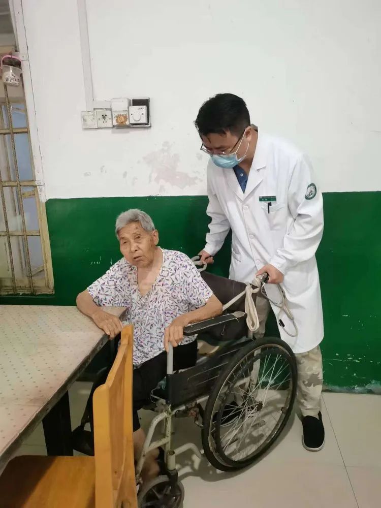 一到養老院,院領導和支部的黨員們紛紛走到老人們身邊,為老人測量血壓、血糖,接受老人和護工們的健康咨詢。得知有卧床老人胃腸道不适,需要到床邊查看,代坤同志立刻走到老人床前,為老人仔細查體問診。
