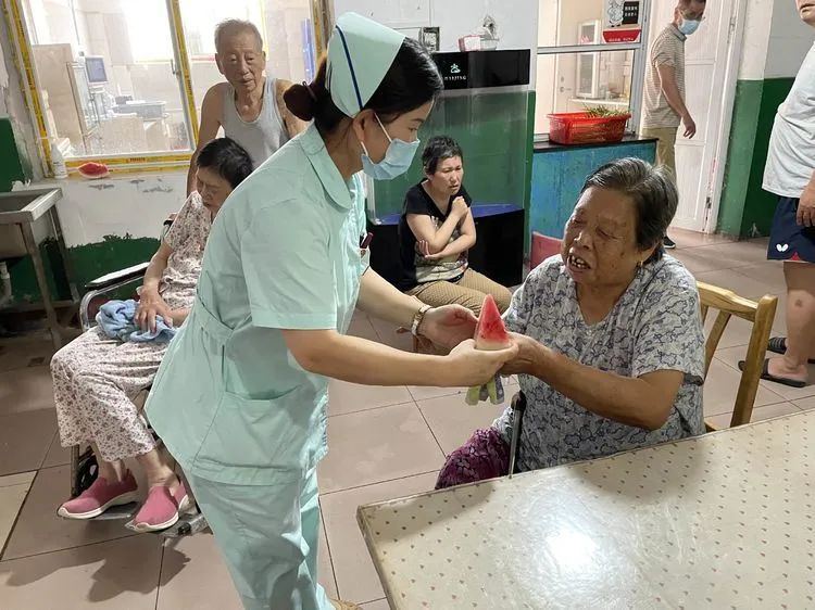 “吃西瓜,大娘。”支部書記李霞給老人們遞上鮮紅的西瓜。“謝謝閨女,上次來送面包的也是你們在醫院吧。謝謝了,這麼關心我們。”老人說。李霞表示,在院領導的帶領下,支部多次聯合其他支部以健康義診的方式來到養老院和和附近社區,正值炎炎夏日,這次還為老人們帶來了可口的西瓜,讓老人們降降溫。
