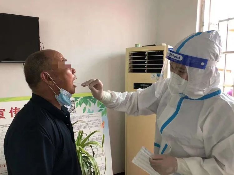坐在簡易的鐵皮棚裡,他和同事開始為居民采樣,悶熱超出預期,汗不停的順着後背流進腰部,最麻煩的是臉上的汗,一旦滴在眼睛上,不得不用力眨眼才能繼續幹活。一次次擡起手臂、消毒、采樣,一次次大聲的喊“請張嘴”、“謝謝”,體力逐漸消耗。當天晚上7點四十,他們完成了采樣工作,後來他們才知道,這是後來幾天的支援中,結束最早的一天。