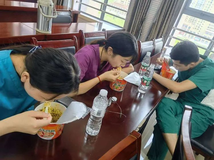 淩晨一點半,終于結束了,正在脫防護服的張曉蕾,突然眼前一黑,癱坐在地上。旁邊的同事趕緊拿來藿香正氣水和冰水,輪流為她降溫。緩過來之後,他們開始吃晚飯。細心的張曉蕾發現,平時吃飯不挑嘴,餓起來要吃兩桶泡面墊墊的徐浩宇今天沒動筷子。“浩宇,怎麼不吃飯?”她問。“曉蕾姐,我們兩個今天采了3000多,他累得不想吃了。”同組的王歡替他回答。