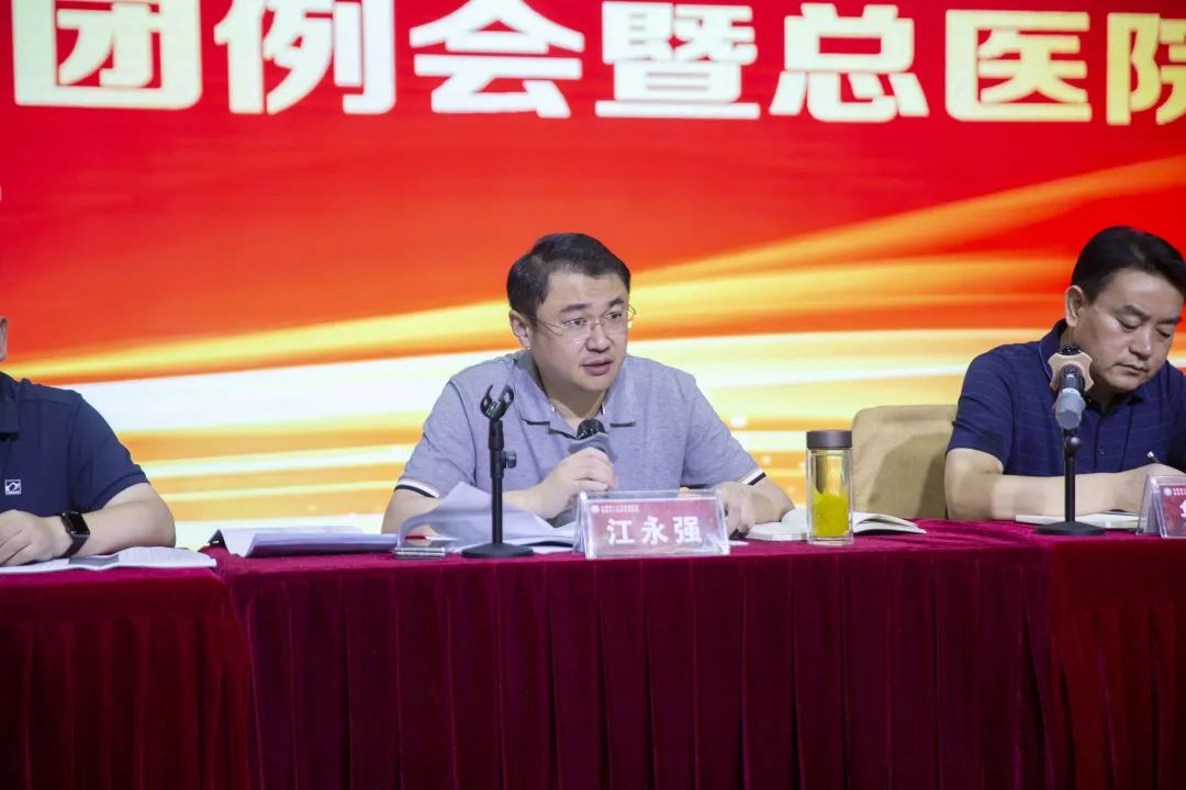 江永強董事長首先就上半年集團及總院運營情況、DIP結算數據,下半年績效、護理、後勤改革、三甲創建等工作進行了全面分析和部署,并發表講話。