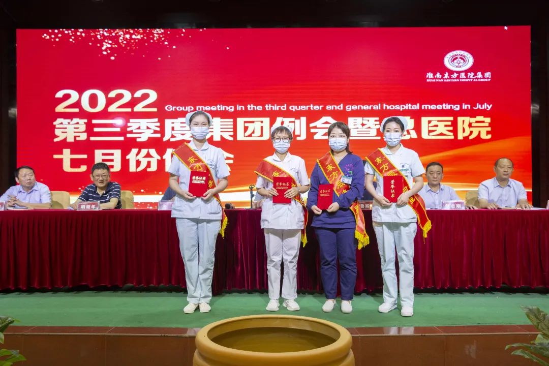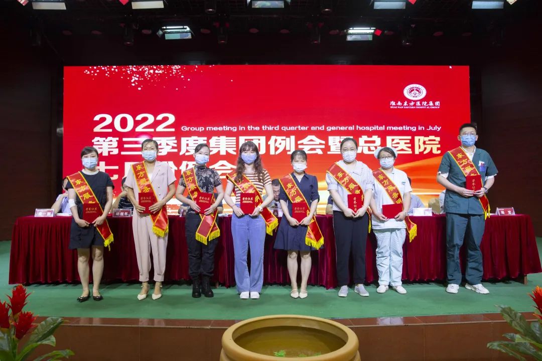 董事長的講話既總結過去又謀劃了未來,為集團和各醫院發展指明了前行方向。随後,集團董事、總院朱勝副院長宣讀關于表彰金年会体育和總院2022年第二季度“東方服務明星”文件。大會現場為李欣、吳漢、張金萍、黃莉、楊萍、趙雯、夏麗豔、文薛等八位榮獲集團“東方服務明星”先進個人榮譽稱号,以及張豔、楊翠珍、徐春梅、高巍、童丹丹、高飛等六位榮獲總院“東方服務明星”先進個人榮譽稱号的同志進行頒獎,并希望各醫院以東方服務明星活動為抓手,以醫療服務規範為基礎,以患者需求為導向,以提高服務質量,提升醫院服務為目的,進一步豐富服務内涵,不斷開拓創新,為醫院集團發展做出更大的努力。