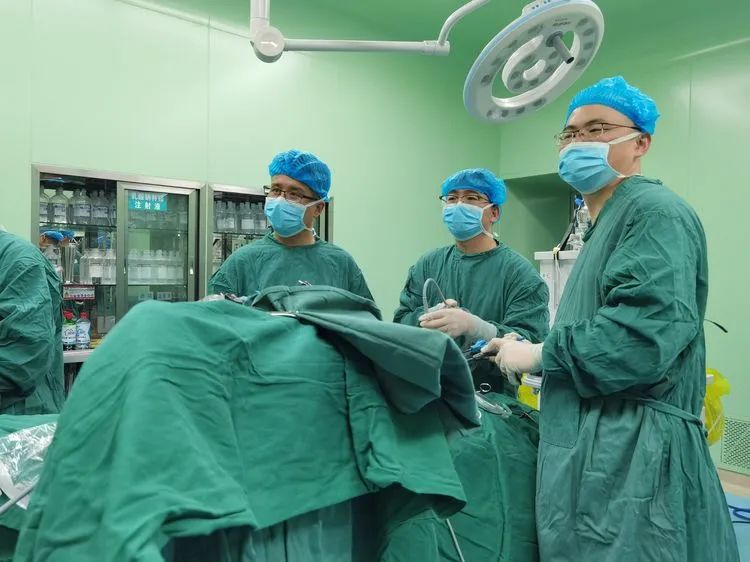 為最大程度的保障術中安全,麻醉科邀請集團麻醉科醫療中心劉侖院長為其實插管全身麻醉,廣濟醫院麻醉科主任蔔美林、朱瑾醫師配合實時監控患者狀态。集團總院普外科醫療中心曹輝主任主刀,經過嚴格的麻醉管理,老人生命體征平穩,在手術室團隊的密切配合下,曹輝主任帶領團隊為其順利行腹腔鏡輔助下乙狀結腸癌根治術。