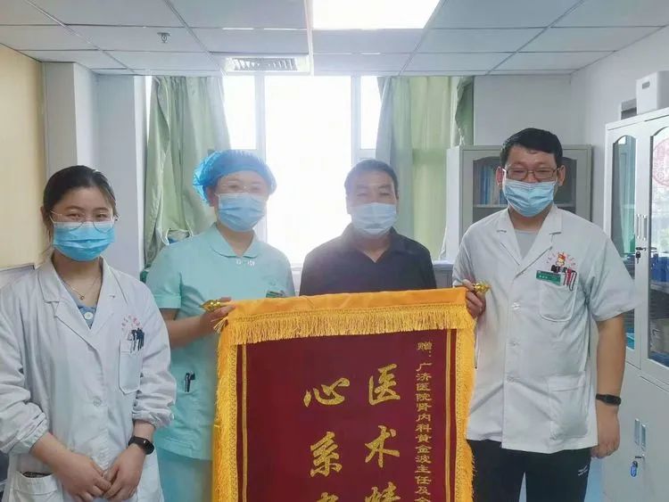 說話間,又是一位前來送錦旗的患者家屬。廣濟醫院腎内科,就像任勞任怨的腎髒一樣,默默的在自己的崗位上守護着每一位患者,诠釋着仁心仁術護“腎”人的責任和擔當。