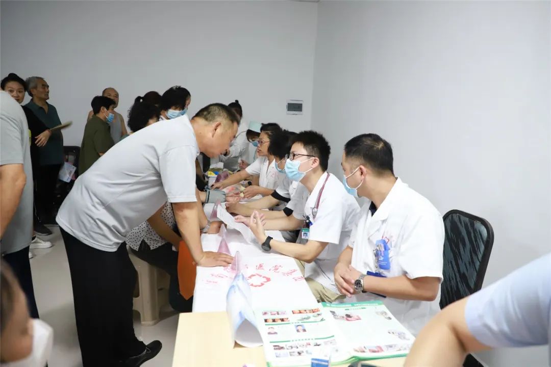 當天上午,在胡繼年院長、方雲亮書記的帶領下,外聯部組織神經内科、心内科等十餘名醫護人員和機關、門診支部黨員志願者服務隊在服務點開展了大型“送醫、送藥、送健康”義診宣教活動。